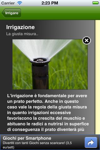 Prato Ok Free è a tutti gli effetti una guida per gli appassionati di giardinaggio, che sono interessati a realizzare e/o mantenere in forma il proprio prato. All’interno dell’applicazione sono presenti vari tipi di schede (divise per argomenti) che spiegano testualmente e con delle immagini, come mantenere in forma il proprio giardino.