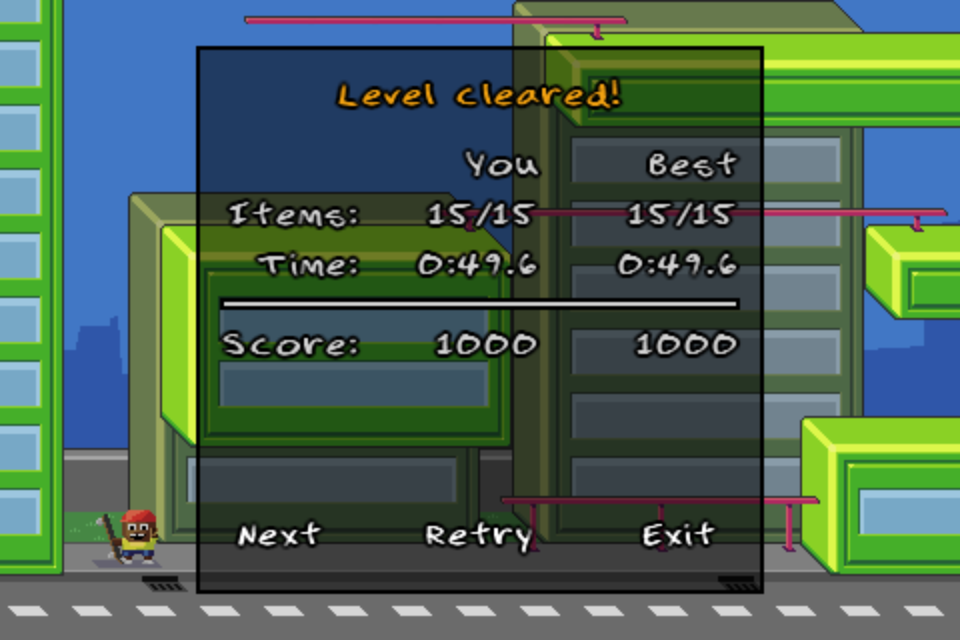 32 livelli in cui dovremo mettere alla prova i nostri riflessi. Accompagnati da una musichetta funky e un’interfaccia tipica dei giochi retro, acquisteremo sempre più velocità a bordo del nostro skate, dovremo saltare e aiutarci con le rampe e le ringhiere per raccogliere quante più lattine possibili nel minor tempo possibile.