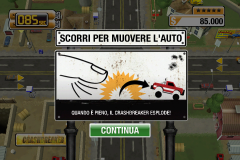 Giocare è molto semplice: la nostra auto accellererà in automatico, e la prima mossa da fare sarà semplicemente direzionarla trascinando il dito sullo schermo per farla schiantare all’incrocio che troveremo poco più avanti. A questo punto cominceranno i primi incidenti, ed una barra, il crashbreaker, si ricaricherà di volta in volta. Ad ogni carica, con un tap faremo esplodere la nostra auto, creando quindi ulteriori danni ad auto ed edifici circostanti. Dopo la prima esplosione, potremo continuare a far “saltellare” la nostra auto per spostarla in zone ancora intatte, o semplicemente per cercare di bloccare ancora di più il traffico, semplicemente trascinando il dito sullo schermo nella direzione desiderata.