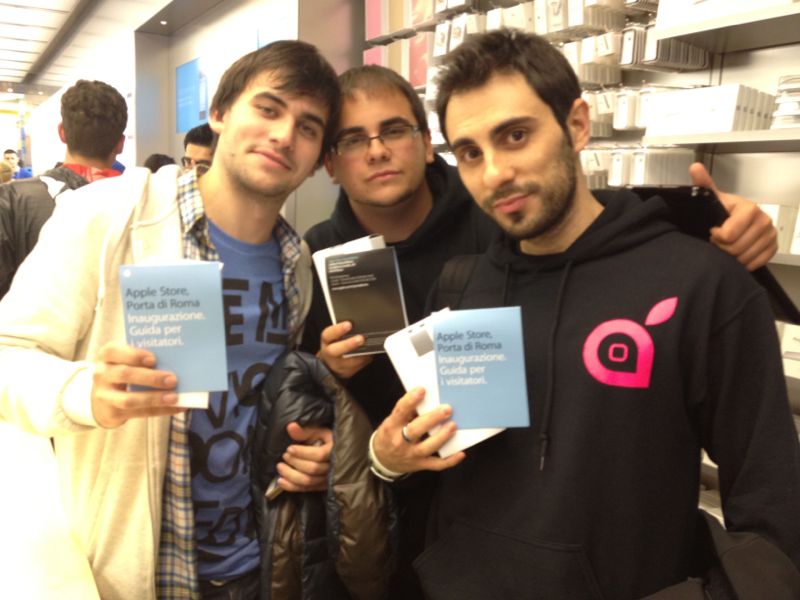Ore 10:30 – Qualche altra foto dall’interno dello store, i nostri ragazzi si stanno un po’ svagando dopo la lunga nottata passata fuori dallo store. Qui potete vedere una new entry (Leo, il ragazzo in mezzo, dovreste conoscerlo dal lancio del nuovo iPad) ossia Walter che da qualche mese si è aggiunto al nostro staff. Per lui è stato il primo live targato iSpazio.