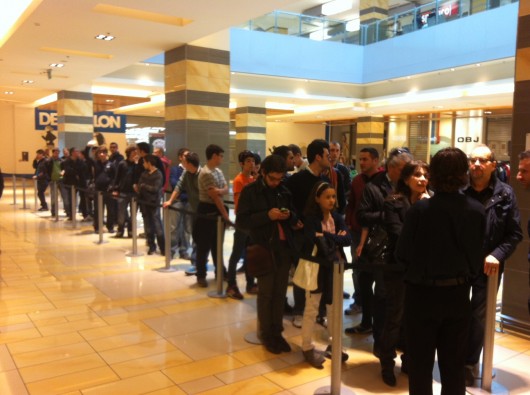Ore 09:30 – La fila raggiunge l’apice. Viene chiusa anche la quarta fila. Da questo momento in poi tutti i nuovi arrivati dovranno attendere addirittura fuori al centro commerciale, nelle apposite transenne. Intanto Jacopo e Luca sono all’interno dell’Apple Store e lo Store Manager sta spiegando tutto quello che verrà fatto in questo negozio, come è stato costruito, quanti metri quadri raggiunge la sua superficie e quant’altro. A breve maggiori informazioni e le foto dall’interno.