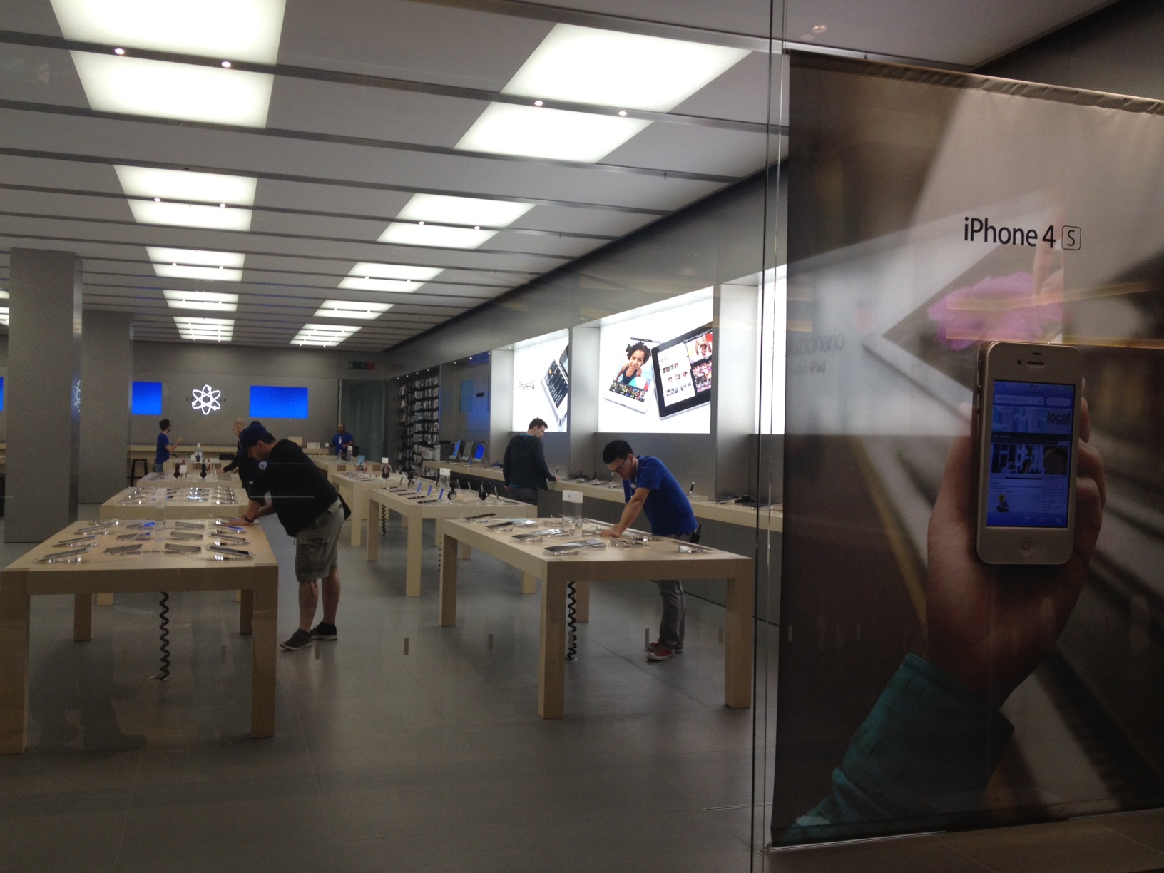 Ore 08:00 – Siamo entrati nel centro commerciale ed abbiamo preso posizione di fronte all’Apple Store. L’apertura ufficiale avverrà tra 2 ore ma iSpazio, come sempre, avrà la possibilità di entrare 1 ora prima in quanto stampa. Ecco alcune foto dello Store visto attraverso la vetrata:
