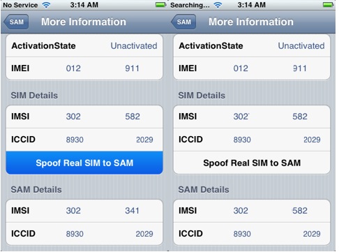 - Sempre restando in More Information clicchiamo su Spoof Real SIM to SAM;