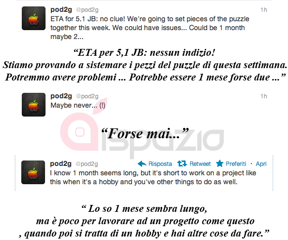 Meno di un’ora fa il famoso Hacker pod2g ha aggiornato il suo profilo di Twitter con frasi davvero sconfortanti per tutte quelle persone che stanno attendendo con ansia il rilascio del Jailbreak di iOS 5.1: