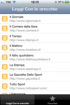 Avviando l’applicazione avremo a disposizione due semplici schede: la prima, dove sono già presenti numerosi link dei giornali italiani più conosciuti come Il Giornale, Il Corriere della Sera, Il Tempo, Il Mattino, La Gazzetta dello Sport, e tanti altri; la seconda, dove potremo inserire qualsiasi sito web desideriamo salvandoli come Preferiti.