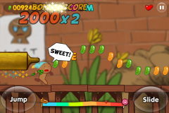 - Jelly Beans: sono normali caramelle a forma di fagiolo che ci aiutano ad aumentare il punteggio, alcune possono essere raggiunte solo aggrappandosi agli oggetti posti in alto tramite un salto e uno slide contemporaneo.