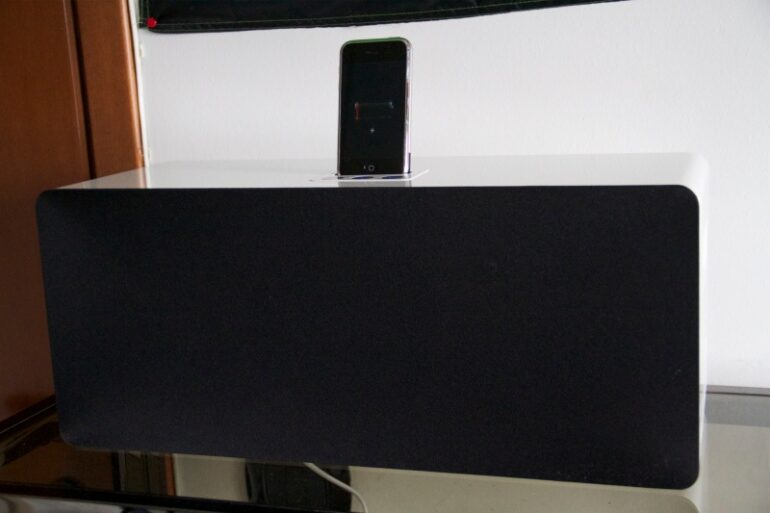 Molto bella è sicuramente la parte alta del dispositivo, composta solamente dal dock per inserire iPhone/iPod e tre pulsanti touch che permettono di alzare e abbassare il volume o di avviare o mettere in pausa la riproduzione.