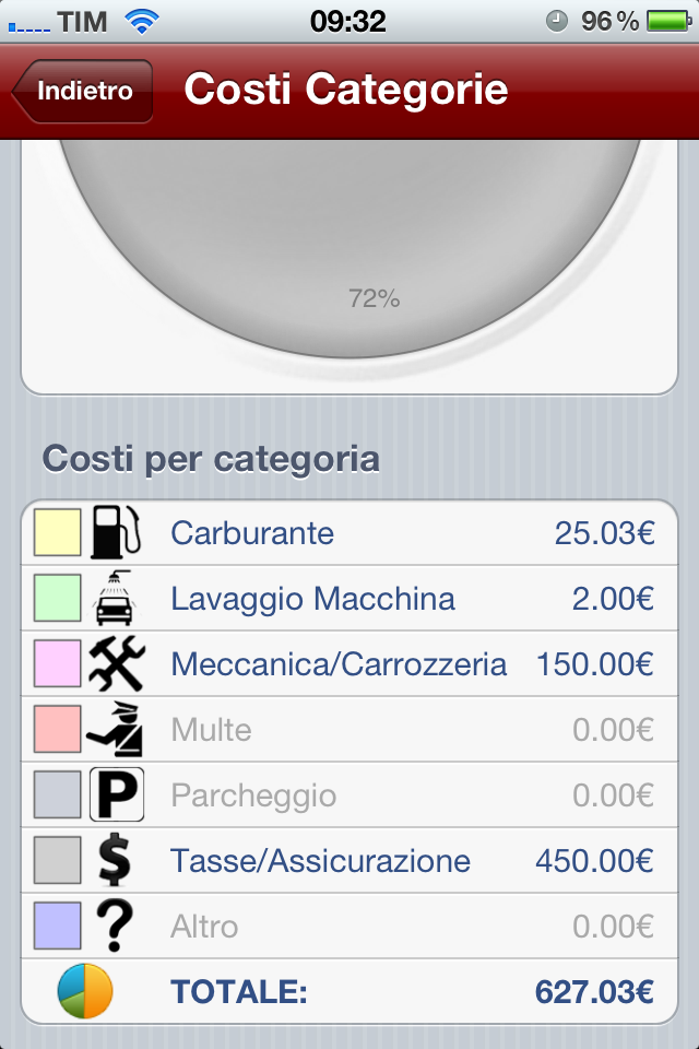 Mi soffermo per descrivere maggiormente la scheda Veicoli Intestati, che è quella più ricca di informazioni. All’interno di questa sezione infatti troveremo tutte le informazioni relative ad ogni veicolo in nostro possesso (Targa, Tipo, Destinazione, Tipo di Carburante, Compatibilità Ambientale, ecc.); inoltre potremo visualizzare tutte le informazioni sul Bollo con i relativi dettagli riguardo il prossimo pagamento, o ancora entrare in una completa sezione riguardante la Gestione dei Costi, dove potremo creare una scheda per ogni tipo di costo relativo ad un determinato veicolo (Carburante, Lavaggio, Meccanico/Carrozziere, Multe, Parcheggio, Tasse/Assicurazione, Altro), Visualizzare un grafico con tutti i consumi riguardo il Carburante (completo di statistiche mensili) o visualizzare le statistiche riguardo i costi totali sia con grafico a torta che con grafico mensile.