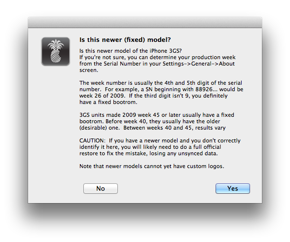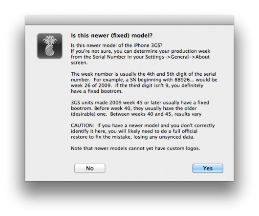 selezionate SI se avete un modello recente di iPhone 3GS, viceversa cliccate su NO