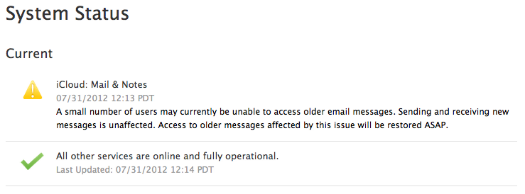 Il messaggio, pubblicato sotto “iCloud: Mail & Note” è comparso nella giornata di ieri ponendo all’attenzione degli utenti il suddetto problema, anche se l’invio e la ricezione di nuovi messaggi non dovrebbero essere influenzati.