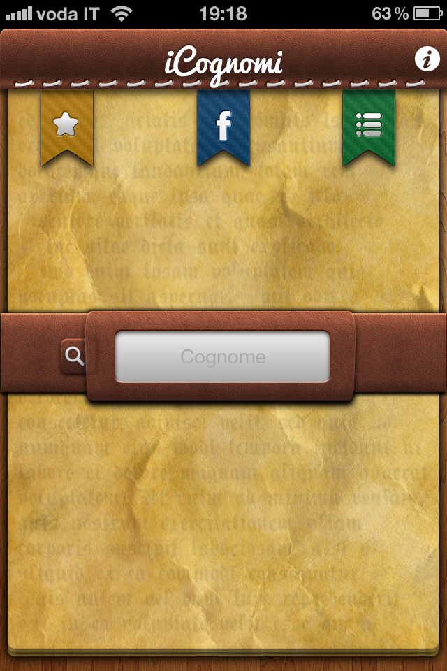 Appena avvierete l’app, vi troverete di fronte la schermata principale, con al centro una casella di testo per ricercare il cognome che desiderate. In alto potete notare tre pulsanti, Preferiti, Facebook e Lista. Il database dei cognomi è ora completamente offline, quindi consultabile anche senza connessione ad internet, e l’app risulta molto piacevole e curata in modo impeccabile dal punto di vista grafico.