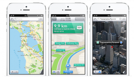 Con iOS 6, Apple ha deciso di abbandonare le mappe di Google e di creare un nuovo servizio di navigazione in collaborazione con TomTom. È stato inserito un sistema di ricerca dei punti d’interesse e un sistema di navigazione vocale turn-by-turn.