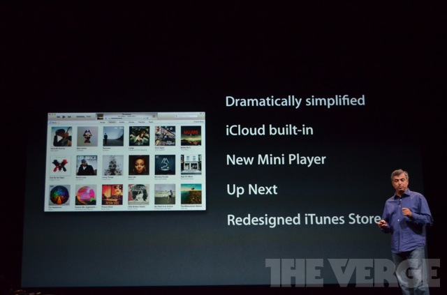 “Abbiamo creato iTunes perché amiamo la musica, e ora abbiamo deciso di tornare alle origini con un design incredibilmente pulito che mette in primo piano la musica,” ha dichiarato Eddy Cue, Senior Vice President di Internet Software and Services per Apple. “Il nuovo iTunes funziona alla perfezione con iCloud, così i clienti hanno sempre a portata di mano l’intera libreria, e abbiamo aggiunto nuove fantastiche funzioni: ascoltare la musica sarà ancora più divertente.”