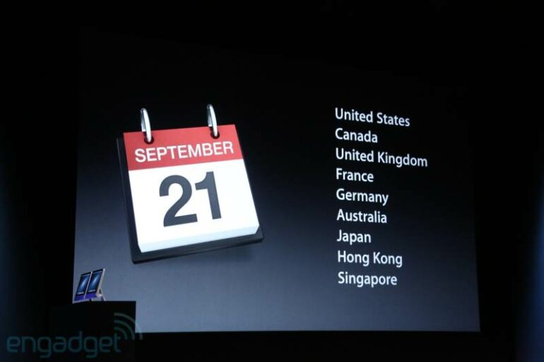 Per quanto riguarda l’iPhone 5 sarà possibile acquistarlo in pre-ordine a partire dal 14 settembre, probabilmente sono nei paesi della prima fascia. Sarà disponibile negli Apple Store il 21 settembre per i seguenti paesi: