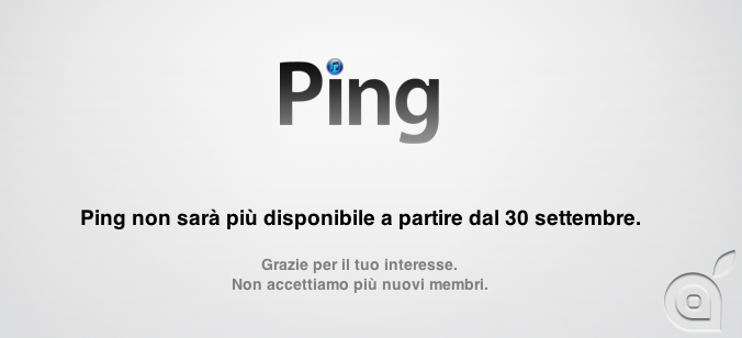 Era il 20 Settembre 2010 quando Apple lanciò Ping, un social network musicale attraverso il quale la società dava la possibilità agli artisti di creare una pagina ufficiale da aggiornare con stati, foto e quant’altro. Sono molti gli artisti che dispongono di una pagina su Ping al momento, ma il servizio non ha mai ottenuto un grande successo ed oggi Apple fa sapere che non sarà più disponibile a partire dal 30 Settembre.