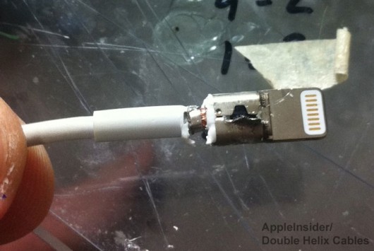 Peter di Double Helix Cables ha “vivisezionato” il nuovo cavetto che permette di collegare l’iPhone 5 ad un qualsiasi Pc/Mac o presa di corrente, ed ha trovato quello che sembra essere un chip di autenticazione. Il chip sarebbe posto tra il contatto V+ ed il power pin del nuovo connettore Lightning.