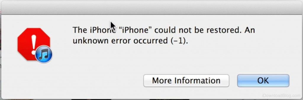 Fase 11: Attendete che iTunes completi il ripristino e anche se riceverete l’errore -1 non preoccupatevi poichè è tutto nella norma.