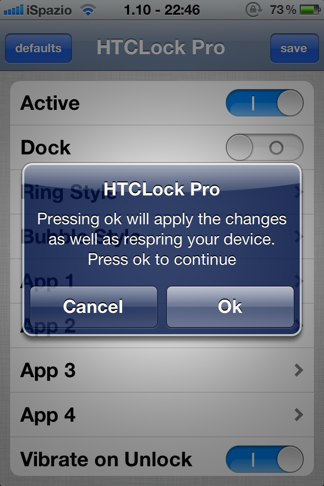 Una volta terminate tutte le nostre scelte, per applicarle è necessario un respring, in particolare effettuando un tap su “Save” e successivamente su “Ok”, verrà riavviata la Springboard e saranno applicate le modifiche desiderate.