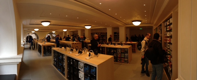 Ore 09:30 – La panoramica dall’interno dell’Apple Store è terminata. Si torna a piano terra, con un altra foto panoramica che abbiamo realizzato per voi. Lo Store è davvero bello e enorme!