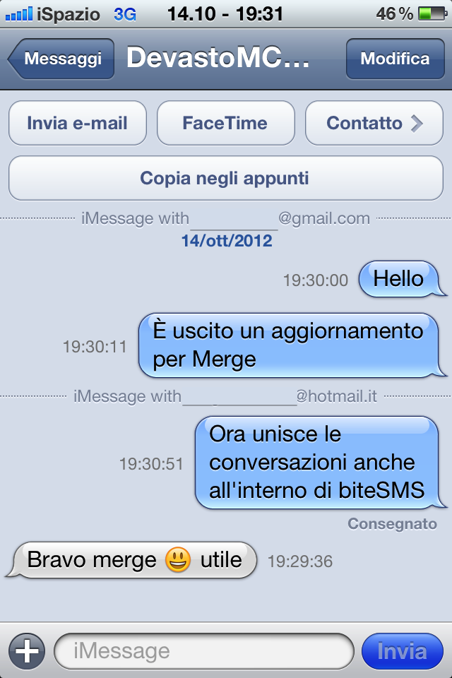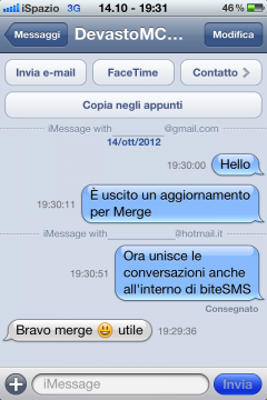 Quando “messaggiate” utilizzando iMessage, se il vostro interlocutore ha più contatti (uno o più indirizzi mail, numero di telefono) potrebbero venirsi a creare più conversazioni all’interno dell’applicazione. Merge risolve questo antipatico problema sia nell’App Messaggi sia nelle App di terze parti.