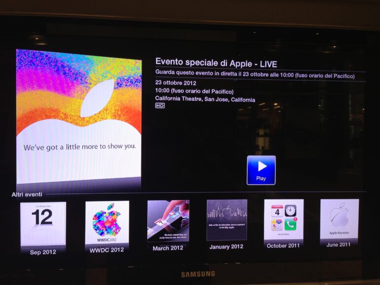 Per la prima volta Apple ha appena pubblicato su Apple TV un banner tramite il quale sarà possibile visualizzare l’evento in diretta in HD.