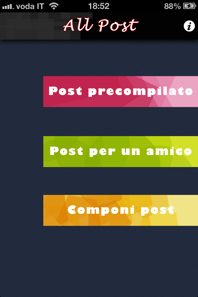 Appena avvierete l’applicazione, visualizzerete subito la schermata principale, nella quale potrete vedere le tre sezioni principali per creare un post, ovvero: