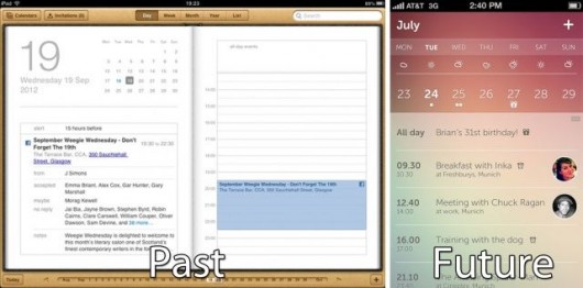 L’applicazione Calendario di default in iOS6 ricorda una vecchia agenda anni ’70. Mentre potrebbe avere un look più essenziale come Calvetica o addirittura potrebbe ispirarsi a “Day” un splendido concept di Toby Negele.