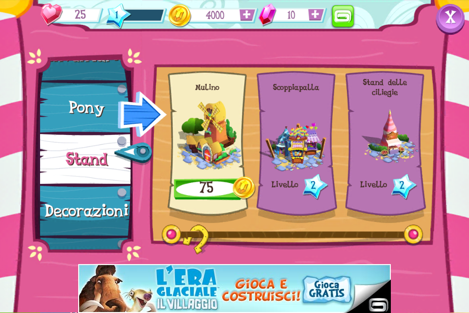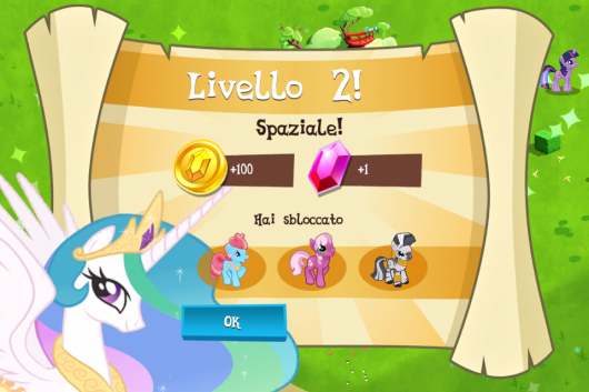 Arrivati a questo punto, inizierete a vedere il villaggio, per ora composto solo da un palazzo, e un pony viola che utilizzerete per costruire le altre abitazioni dei vari pony. All’interno del gioco ci sono altri minigiochi, grazie ai quali potrete guadagnare monete o stellina che, come saprete, in questi giochi sono fondamentali