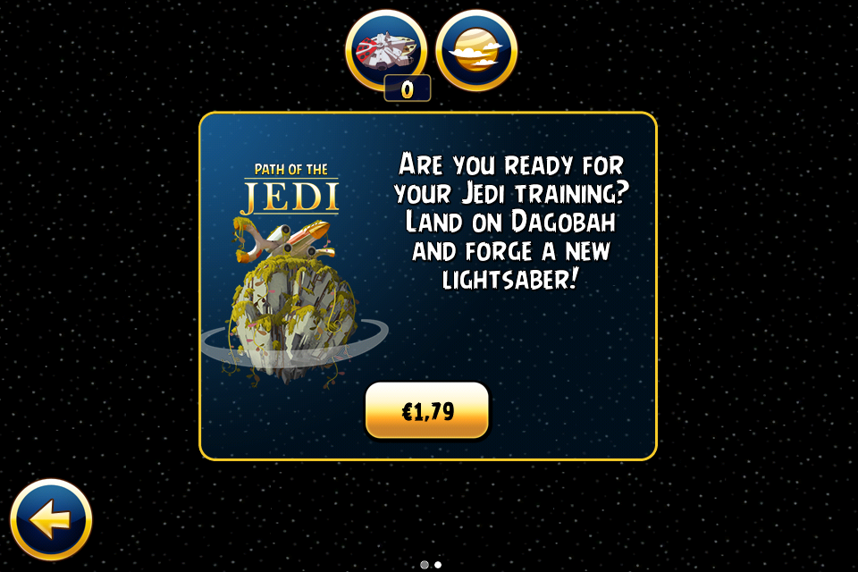 L’obbiettivo del gioco è sempre lo stesso: distruggere gli odiati maiali verdi travestiti da tropper dell’impero, e cercare di guadagnare più punti possibile per arrivare alle fatidiche tre stelline. Ci troveremo anche di fronte al terrificante Darth Vader, e potremo utilizzare anche il maestro Joda nel livello speciale “La via dello Jedi” sbloccabile tramite in-app purchase.