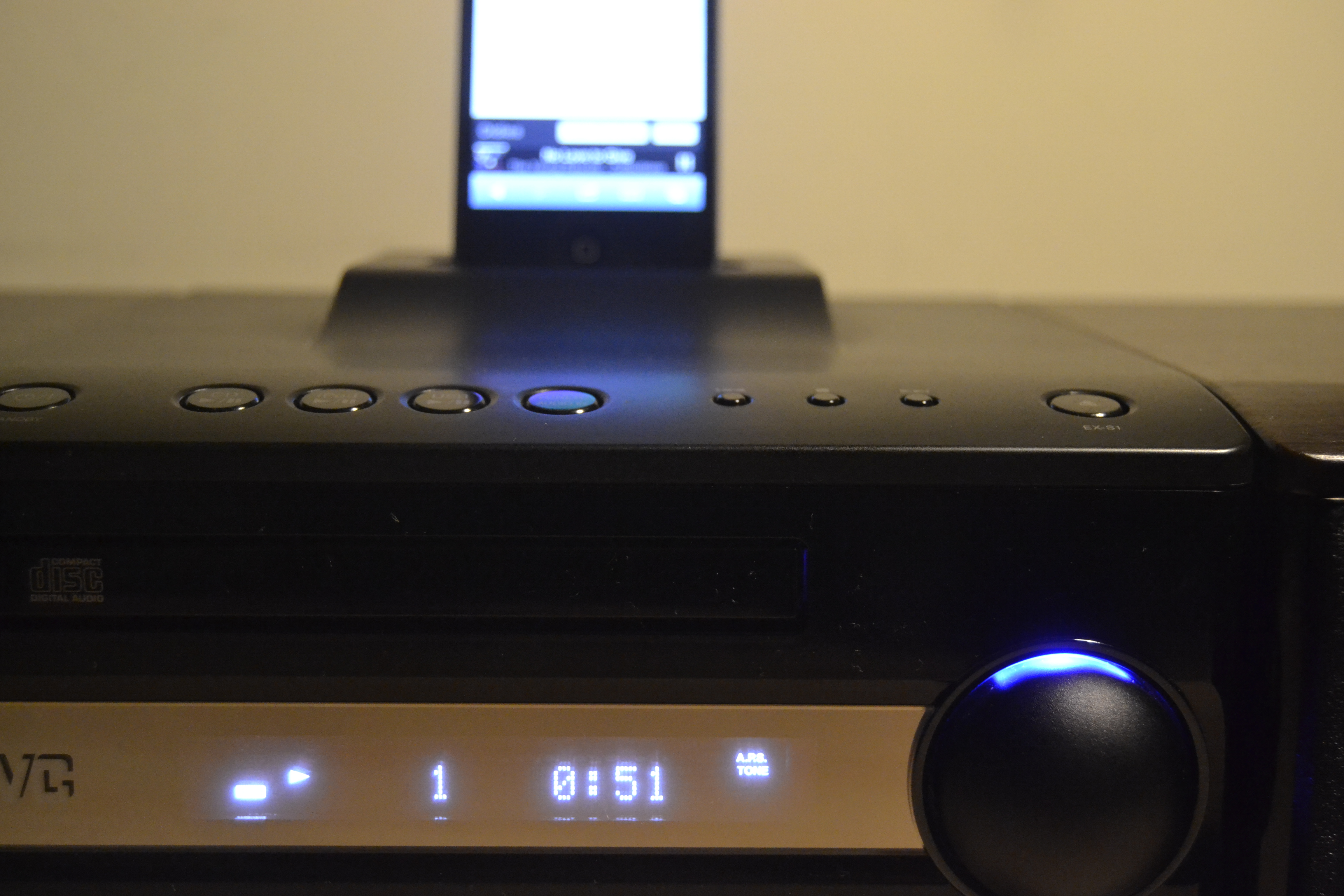 Sicuramente alla JVC non hanno dimenticato di soffermarsi sul design: l’unità si presenta molto bene, con un basso profilo che permette al tutto di inserirsi ovunque senza problemi. I tre blocchi presentano la medesima profondità: ciò rende possibile il posizionamento di essi come un lungo, unico blocco.