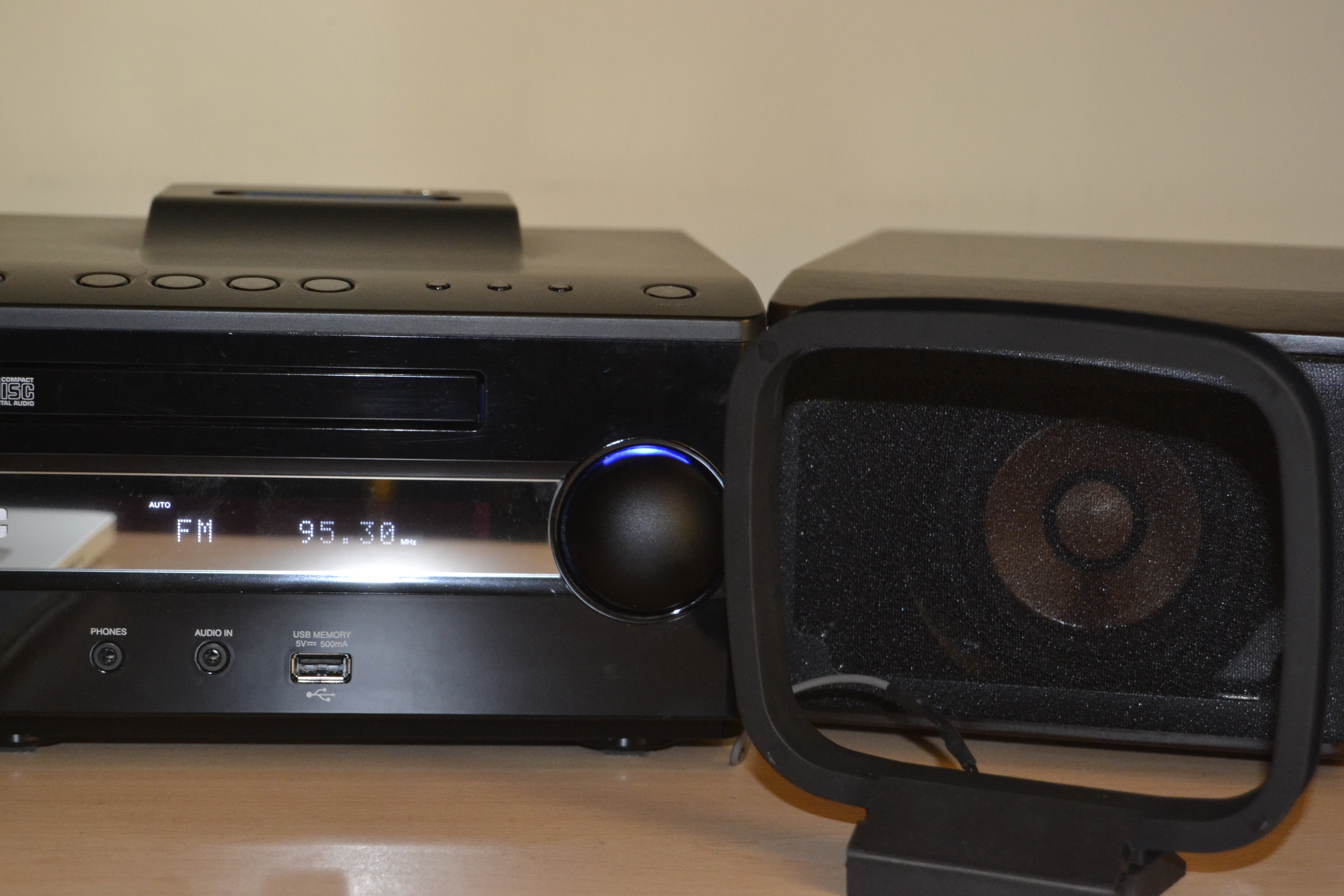 Ma un micro Hi-Fi non deve essere soltanto di bell’aspetto. Apriamo una parentesi sulle funzionalità: il sistema può riprodurre musica da CD, CD MP3 e CD WMA, memorie USB e via iPod/iPhone tramite connettività Dock, tramite la quale i dispositivi verranno anche ricaricati. Dispone anche di funzioni Radio AM/FM e di collegamento AUX, per collegare un televisore, un lettore MP3 o il proprio PC.