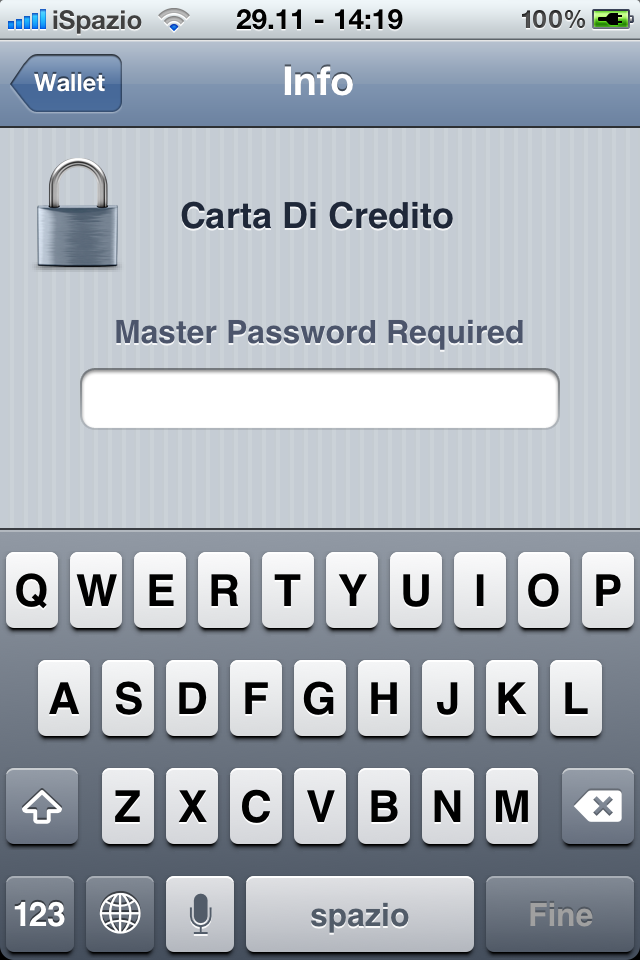 Per ogni modulo/password che andremo a salvare nell’applicazione possiamo decidere se è necessario inserire la Master Password oppure se è sufficiente entrare nell’applicazione utilizzando il codice di 4 cifre. Ad esempio se si trattasse del codice fiscale oppure della password per la Wi-Fi potrebbe essere eccessivo utilizzare la Master Password per proteggerlo.