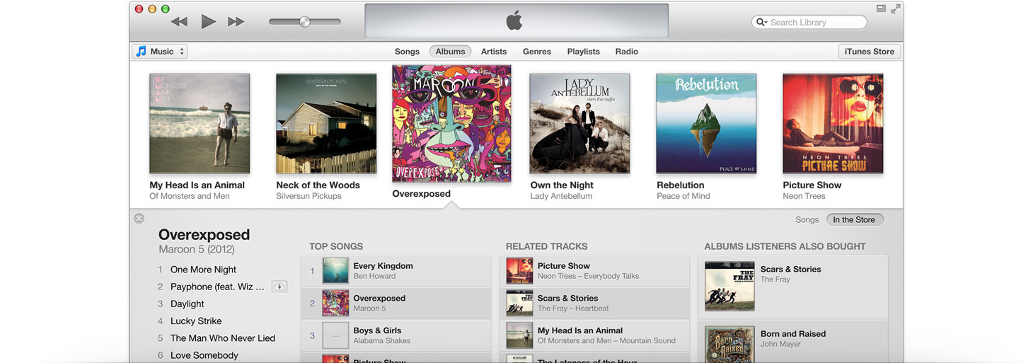 Trovi tutto facilmente, con le nuove viste di iTunes. Cerchi un album? Clicca su Musica e li vedi tutti. Fai lo stesso con i film, le app e tutto il resto. È tutto molto più intuitivo.
