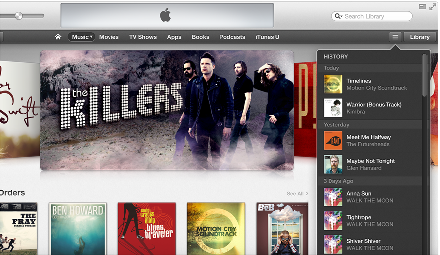 Vuoi ritrovare una canzone che hai ascoltato in anteprima o un film di cui hai guardato il trailer? Facilissimo: clicca sul pulsante “Cronologia delle anteprime” per un veloce riepilogo di tutti i brani e film a cui hai dato un’occhiata. iCloud tiene aggiornata la cronologia delle tue anteprime su tutti i dispositivi. Così, se ascolti un brano mentre sei in giro, lo troverai ad aspettarti sul tuo computer di casa: pronto da riascoltare o da acquistare.