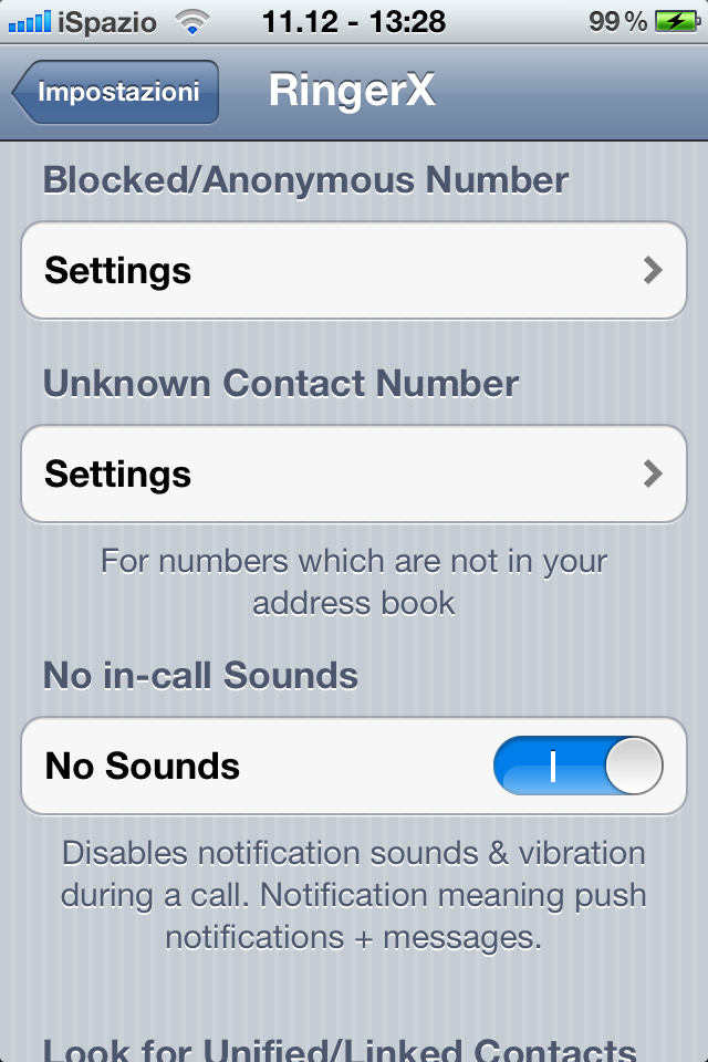 RingerX VIP ci permette di scegliere il tipo di avviso da assegnare alle chiamate e messaggi che riceviamo da numeri non noti. In alcuni casi potremmo essere interessati a non essere disturbati (perché potrebbe trattarsi di pubblicità) in altri casi invece vorremmo essere avvisati a tutti i costi (magari aspettiamo una chiamata importate da un numero non in rubrica), qualunque sia la nostra esigenza viene soddisfatta dal Tweak.