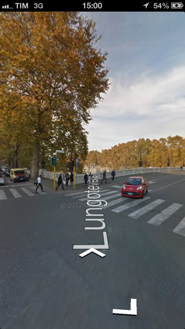 Nell’applicazione pre-installata su iOS lo Street View era visualizzato solo in modalità landscape (orizzontale), mentre su questa nuova versione è possibile la visualizzazione e navigazione anche in portrait (schermo disposto in verticale). Inoltre la grafica in parte cambia, perché visualizzeremo solo le frecce con le direzioni possibili da seguire.
