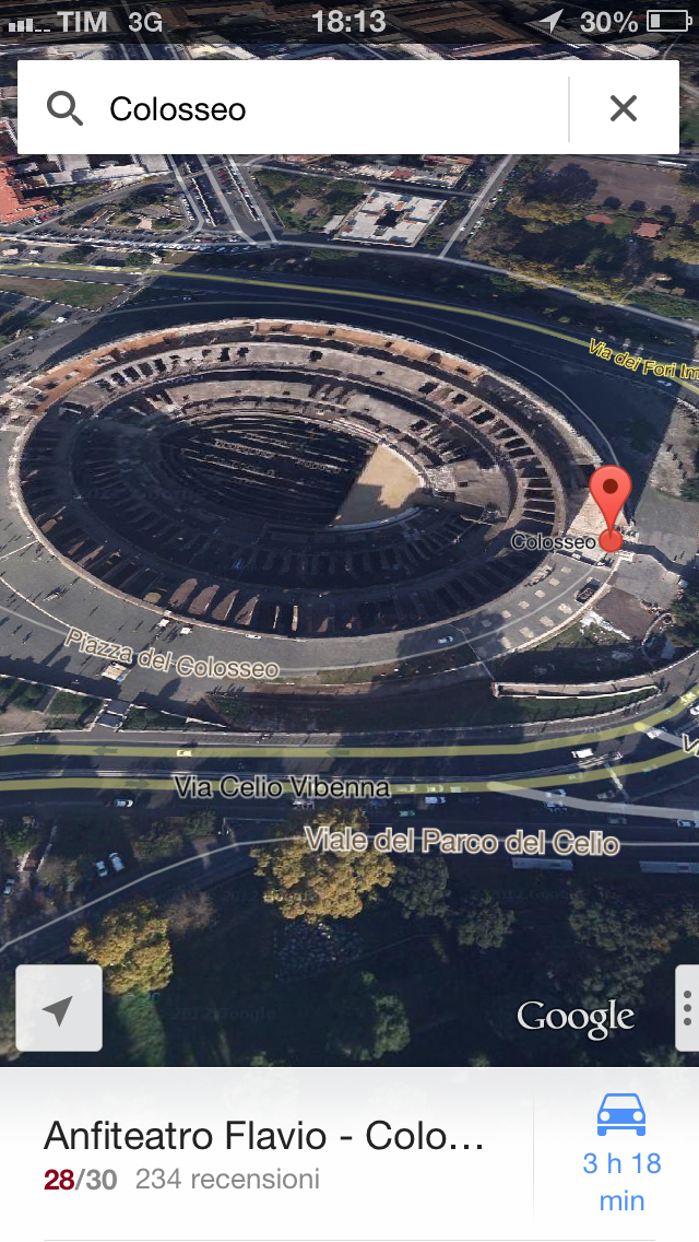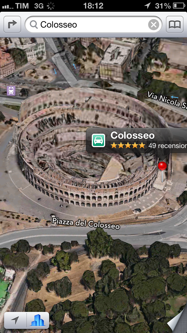 Nel caso specifico del Colosseo possiamo notare che Apple ha effettuato una sorta di rendering tridimensionale quindi abbiamo quello che è il senso della grandezza del monumento e la sua disposizione, questo permette di orientarsi meglio. Nel complesso, su Apple la vista è più gradevole, ma se si effettua uno zoom maggiore c’è sempre qualcosa che “stona”.