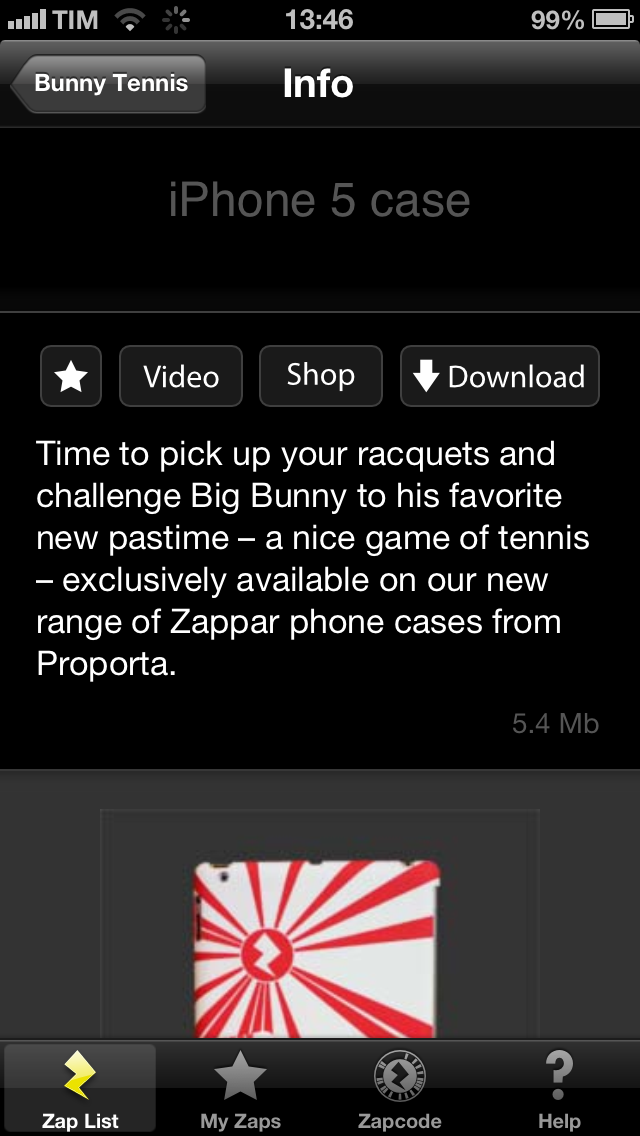 - Un tap su “Zap” e verrà attivata la fotocamera sul retro, inquadrate la cover, in alternativa la card che riporta il disegno della cover, e divertitevi a giocare a tennis con il coniglio paffutello.