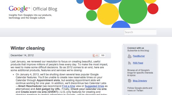 Come da tradizione, Google ha pubblicato un report su quali servizi e programmi eliminerà o aggiungerà nel prossimo anno. Purtroppo le funzionalità eliminate riguardano proprio iOS, chiudendo servizi come Google Sync e Google Calendar Sync.