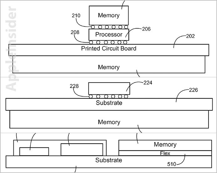 I SoC di Apple prevedono inoltre uno schema flessibile per la disposizione delle varie componenti al suo interno, grazie ad un circuito stampato flessibile, chiamato “flex” che può estendersi oltre il substrato proprio per avere la possibilità di aggiungere ulteriori componenti. Tramite questo sistema la memoria può essere installata sopra o sotto rispetto al substrato, ma comunque all’interno del SoC stesso, riducendo ai minimi termini gli ingombri assoluti dello stesso processore.