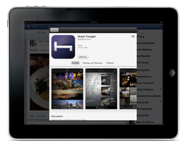 Sappiamo tutti che ogni qual volta selezioniamo un qualsiasi link pubblicitario riguardo un’applicazione da qualsiasi schermata del nostro device, veniamo scomodamente reindirizzati all’AppStore. Facebook, però, ha deciso di rimediare a ciò, eliminando il reindizzamento ogni volta che tapperemo su un’applicazione presente nella app ufficiale del social network.