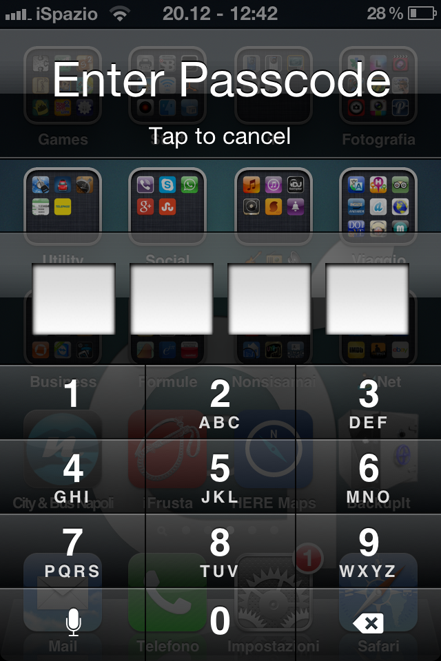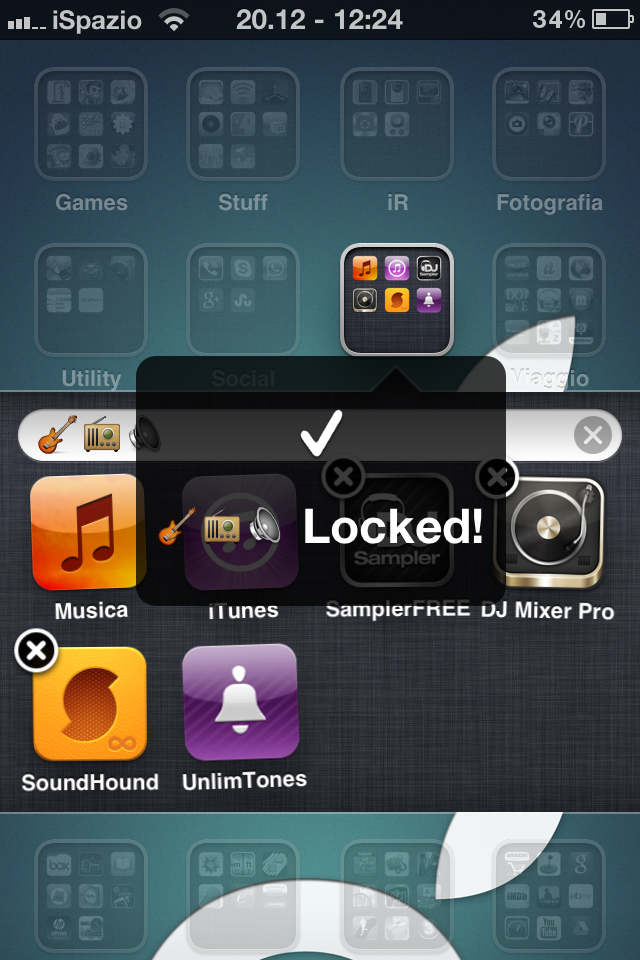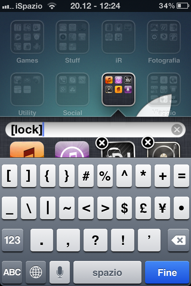 - Folder Passcode: dalla Home screen entriamo nella cartella e sostituiamo il nome chiamandola [lock] (comprese le parentesi quadre)