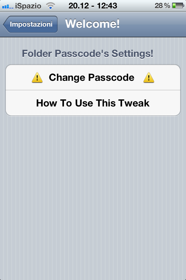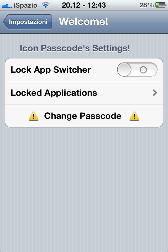 - Dopo l’installazione da Cydia compaiono due nuove voci tra le impostazioni dell’iPhone: Icon Passcode e Folder Passcode
