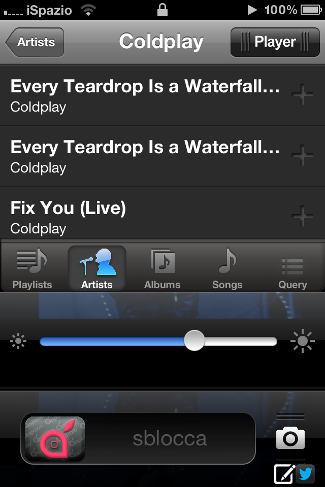 - Possiamo accedere ad una schermata molto più carina, il player, all’interno del quale viene mostrata anche la barra di avanzamento del brano, la copertina e il testo nel caso in cui l’avessimo aggiunto