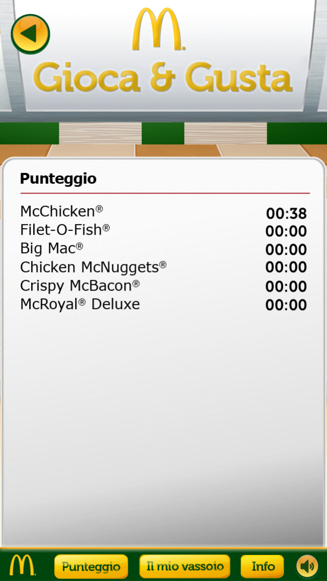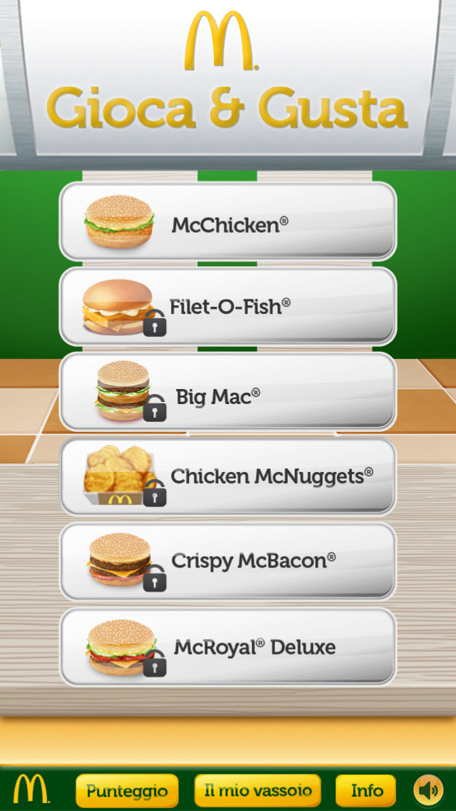 La vincita ti verrà comunicata una volta terminato con successo il sesto gioco (McRoyal Deluxe), a quel punto, ti verrà chiesto di scegliere quale prodotto tra i Grandi Classici McDonald’s preferisci gustare. Nella sezione “Il mio vassoio” comparirà allora l’icona corrispondente al prodotto appena scelto.