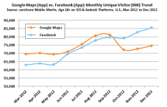 Nei primi sei posti, infatti, ben cinque applicazioni fanno parte della società di Mountain View, e coprono altrettanti suoi servizi. La statistica si occupa nello specifico di calcolare gli ingressi unici degli utenti alle varie app e vede Facebook in vantaggio sulla concorrenza. Le cinque posizioni seguenti, però, sono occupate da servizi di Google, quali: Google Maps, Google Play, Google Search, Gmail e Youtube.
