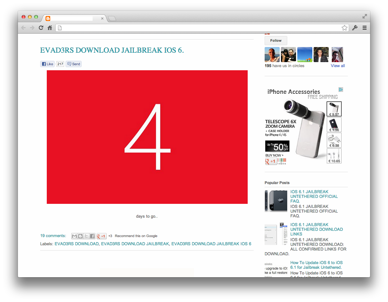 Un nostro utente ci ha segnalato questo sito che mostra un grosso conto alla rovescia puntato su domenica, il giorno in cui dovrebbe essere rilasciato il Jailbreak ad opera del team evad3rs.