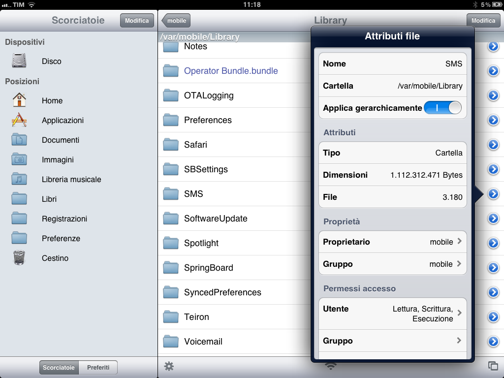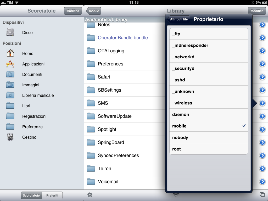 Modificare permessi tramite iFile