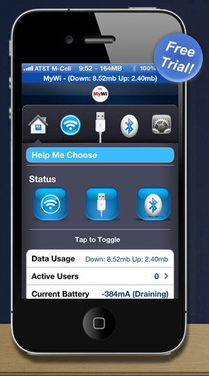 MyWi è un’applicazione che consente di creare un hotspot personalizzato che, a differenza dell’ “Hotspot Wi-Fi” integrato in iOS, consente di conservare il proprio piano dati senza ulteriori esborsi necessari a condividere l’accesso ad internet tramite l’interfaccia Wi-Fi. Le altre caratteristiche di MyWi si possono riassumere in questo elenco: