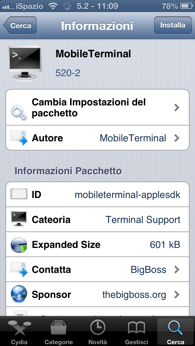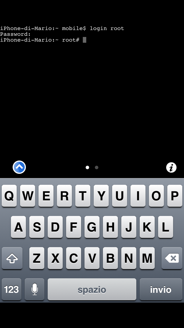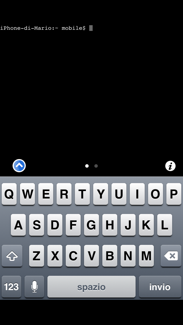 1. Aprite Cydia e cercate MobileTeminal scritto tutto attaccato ed installatelo. Attenzione NON installate MobileTerminal (obsolete)